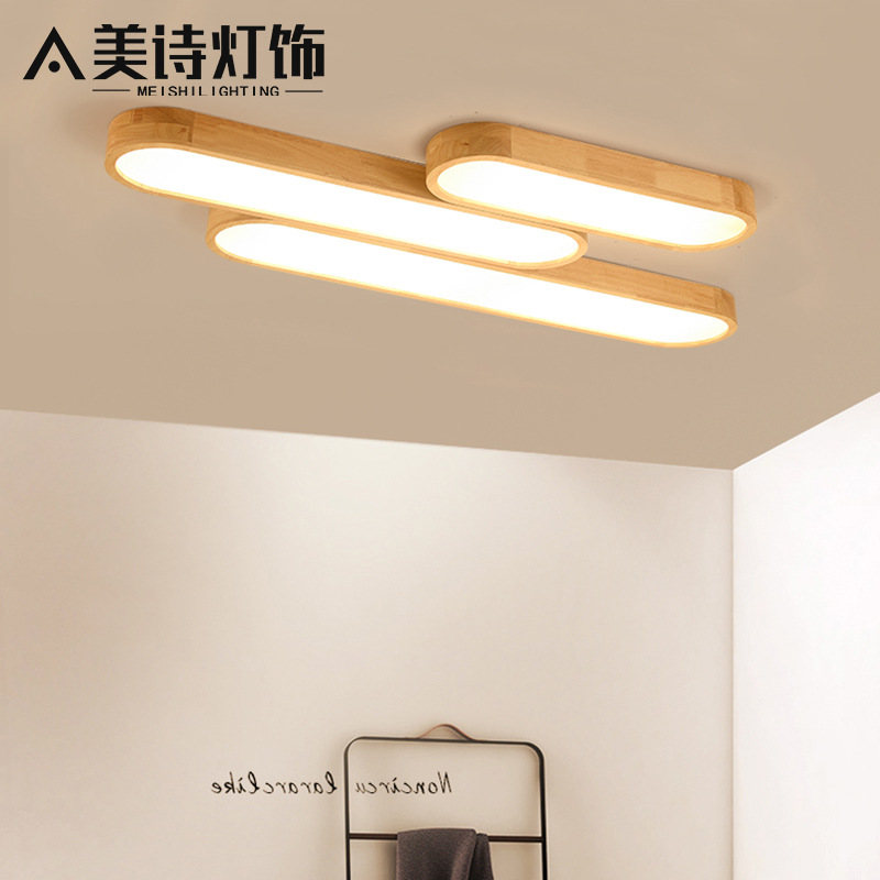Lampu plafon Nordik, lentera led gaya Jepang kayu strip panjang kayu padat ruang tamu kamar tidur