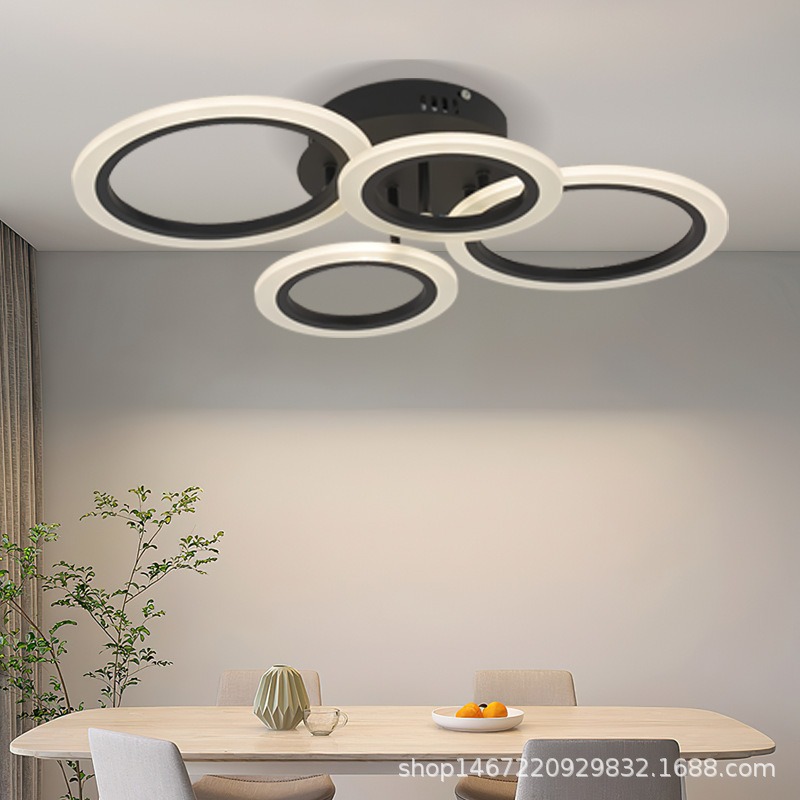 Lampu Kamar Mandi Atap Rumah Tangga Kreatif Nordik Lampu Modern Kamar Tidur Remote Control Lingkaran Ruang Tamu LED 4 Cincin akrilik
