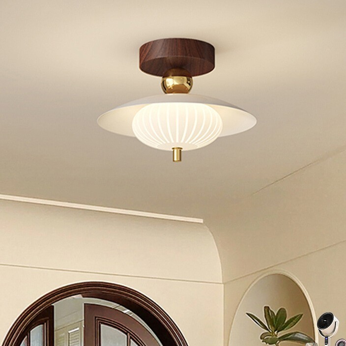 Lampu langit-langit kamar tidur lampu LED log Nordic lampu ruang ultra tipis kayu Jepang bulat kayu padat lampu ruang tamu
