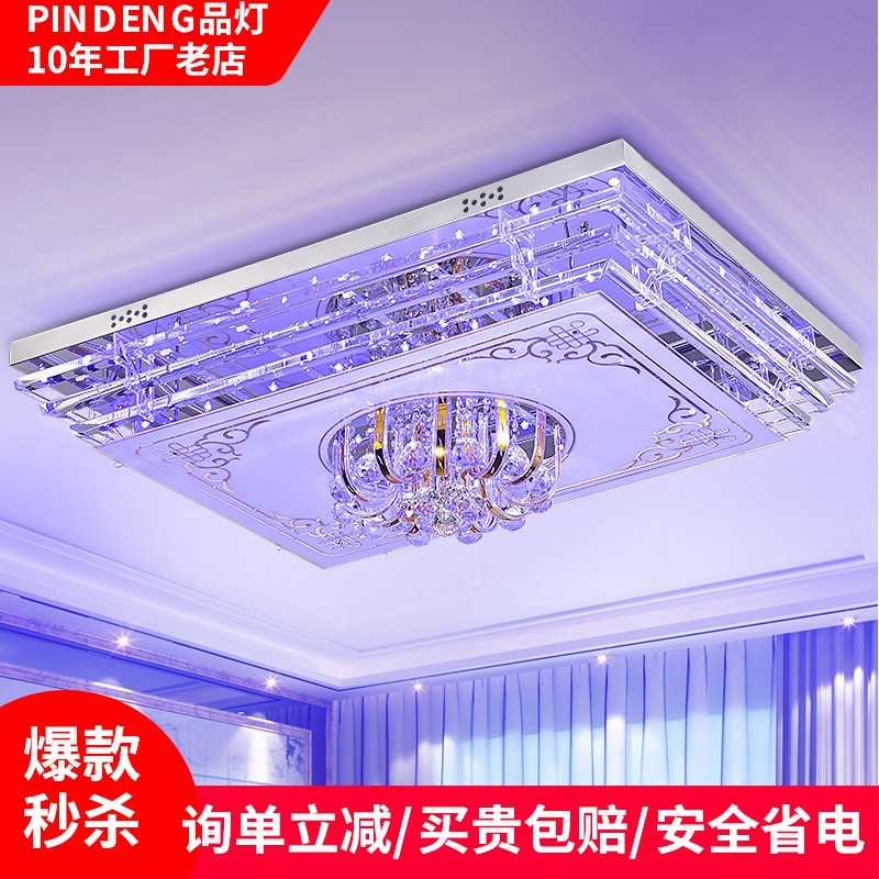 Lampu ruang tamu LED, lampu kristal atmosfer persegi panjang, lampu langit-langit kamar tidur hangat warna-warni modern sederhana