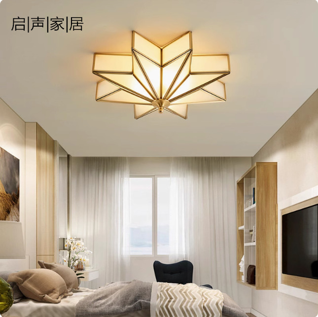 Semua Tembaga Ruang Belajar Lampu langit-langit Led Amerika Lampu Kamar Tidur Utama Nordik Romantis Hangat Lampu Restoran Sederhana Modern