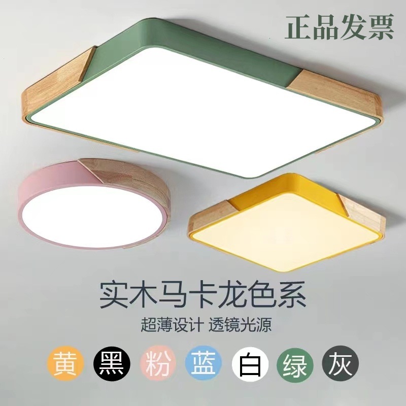 新中式胡桃木色护眼超薄无缝方形灯具普瑞日式原木客厅吸顶灯复古