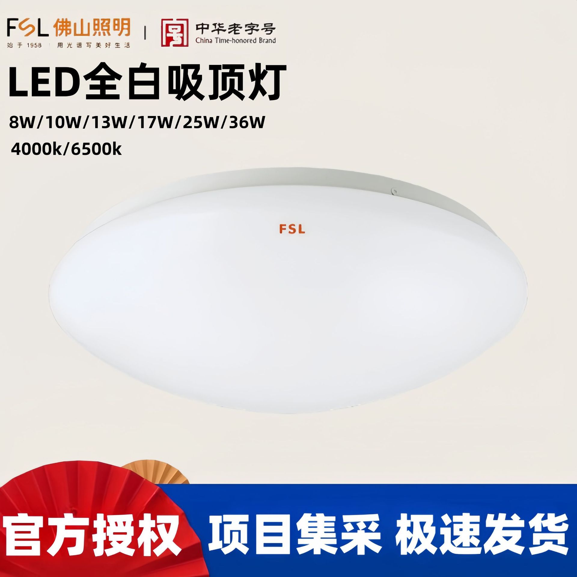 Lampu langit-langit LED FSL Lampu langit-langit bulat putih penuh lampu langit-langit roti kamar tidur balkon 13W17W25W