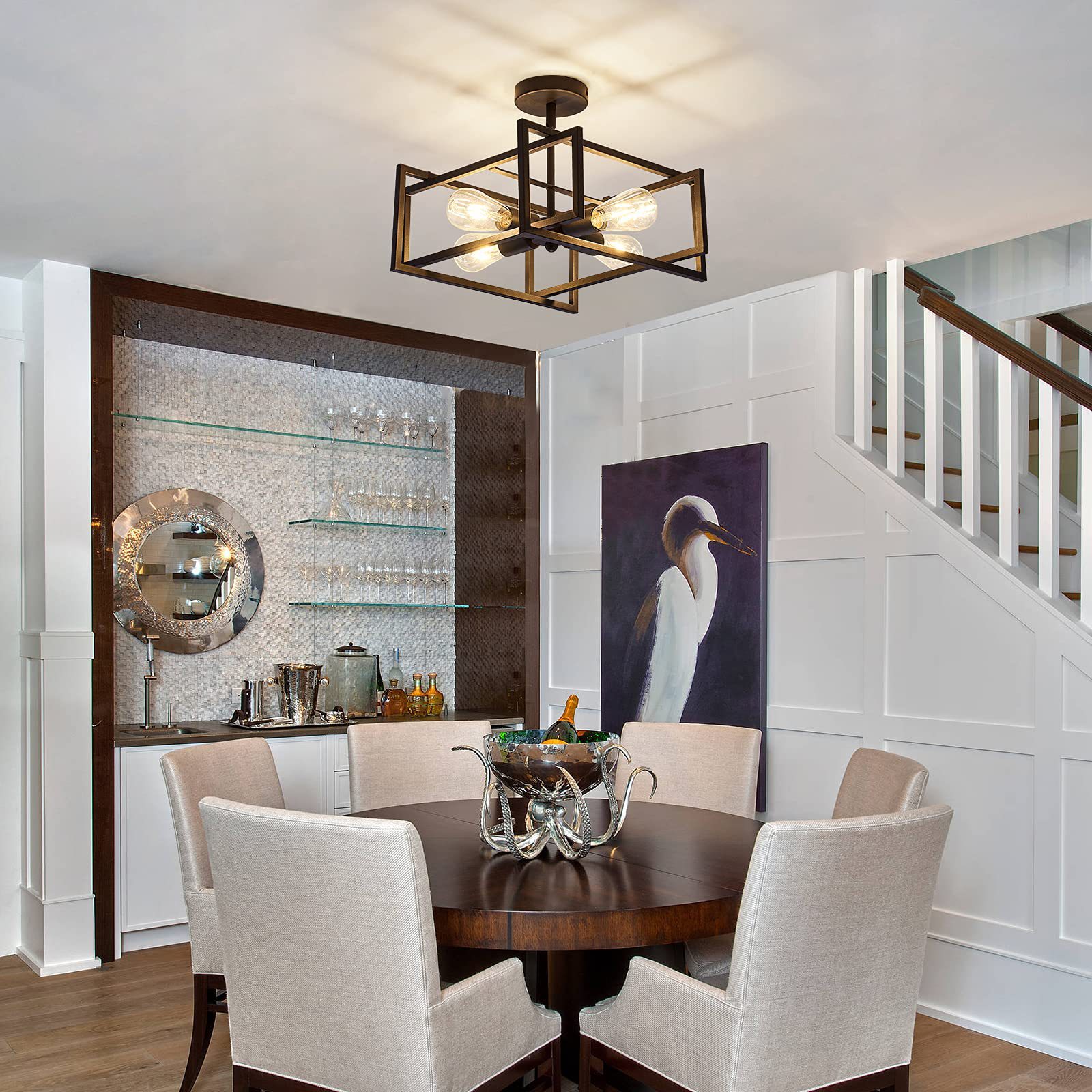 Lampu langit-langit ruang tamu, lintas batas Retro Amerika 4-kepala besi lampu langit-langit post-modern lampu ruang makan belajar kamar tidur lampu langit-langit