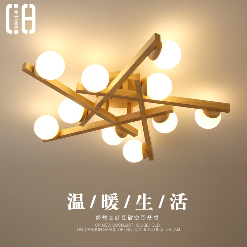 Lampu utama ruang tamu gaya Jepang lampu gaya krim log modern sederhana suasana Nordik kamar tidur lampu langit-langit seluruh rumah