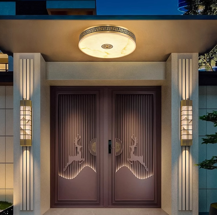 Lampu langit-langit balkon tahan air anti-nyamuk Marmer imitasi tembaga lampu pintu Vila canggih lampu pintu rumah bawaan sendiri