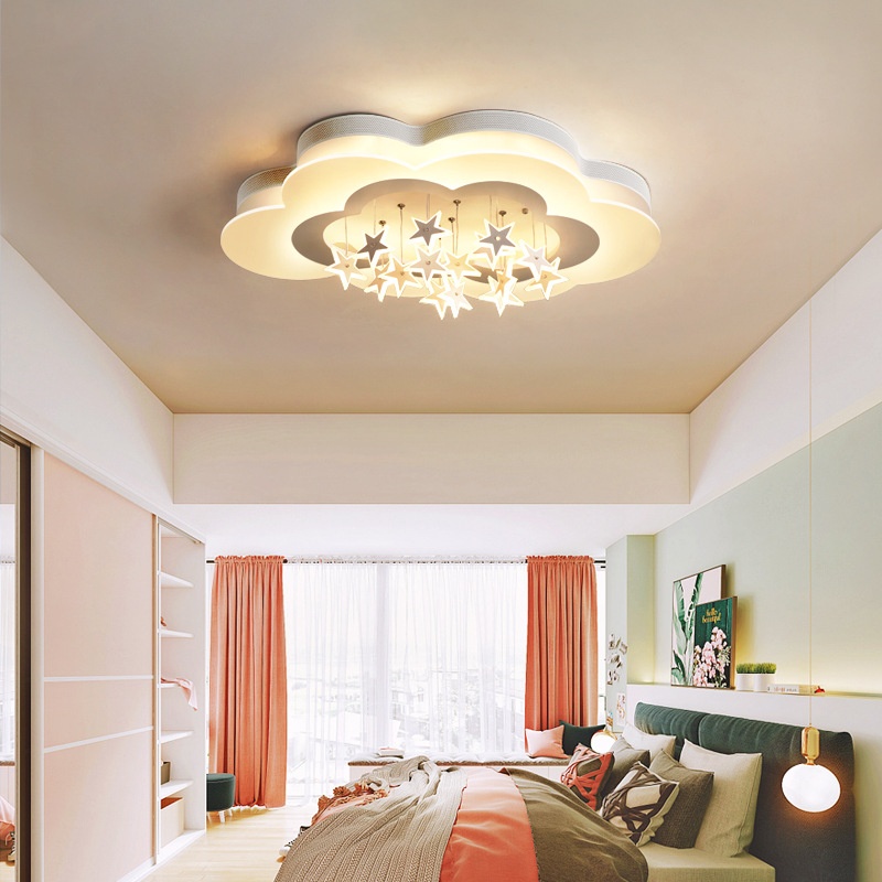 Lampu kamar tidur modern, lampu langit-langit romantis, sederhana, hangat, lampu awan anak perempuan, LED, lampu utama, kamar tidur anak-anak