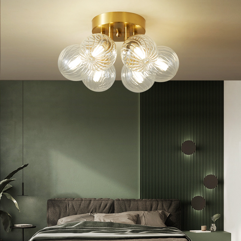 Lampu langit-langit tembaga Nordic, cahaya mewah post-modern sederhana hangat buku kreatif ruang masuk balkon master lampu kamar tidur