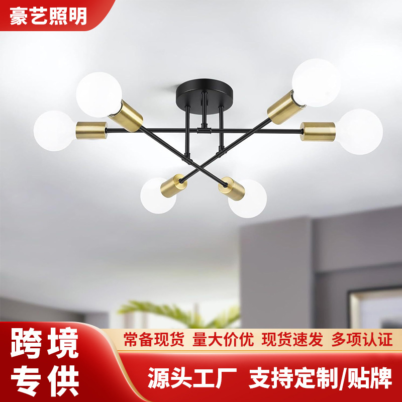 Lampu Langit-langit 6 Kepala Besi Nordik Lampu Kamar Tidur Gaya Industri Restoran Ruang Belajar Lampu Gantung Sederhana Gaya Amerika Kepribadian Kreatif