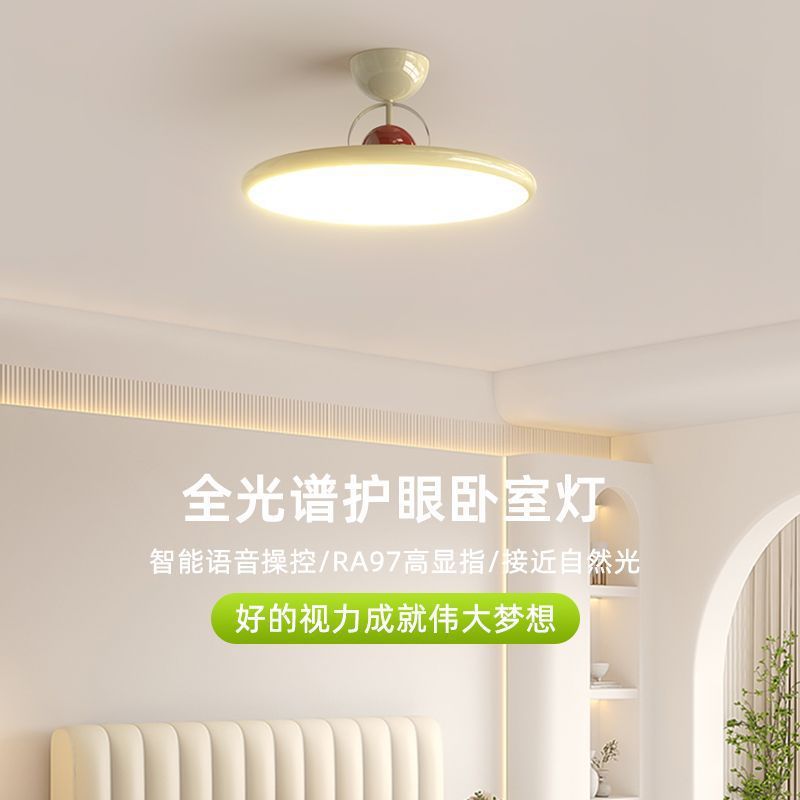 Lampu Kamar Tidur Pelindung Mata Spektrum Penuh Lampu langit-langit Ruang Buku UFO Gaya Krim Retro Nordik Sederhana Modern Cerdas
