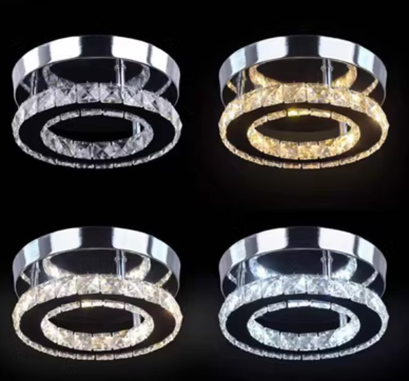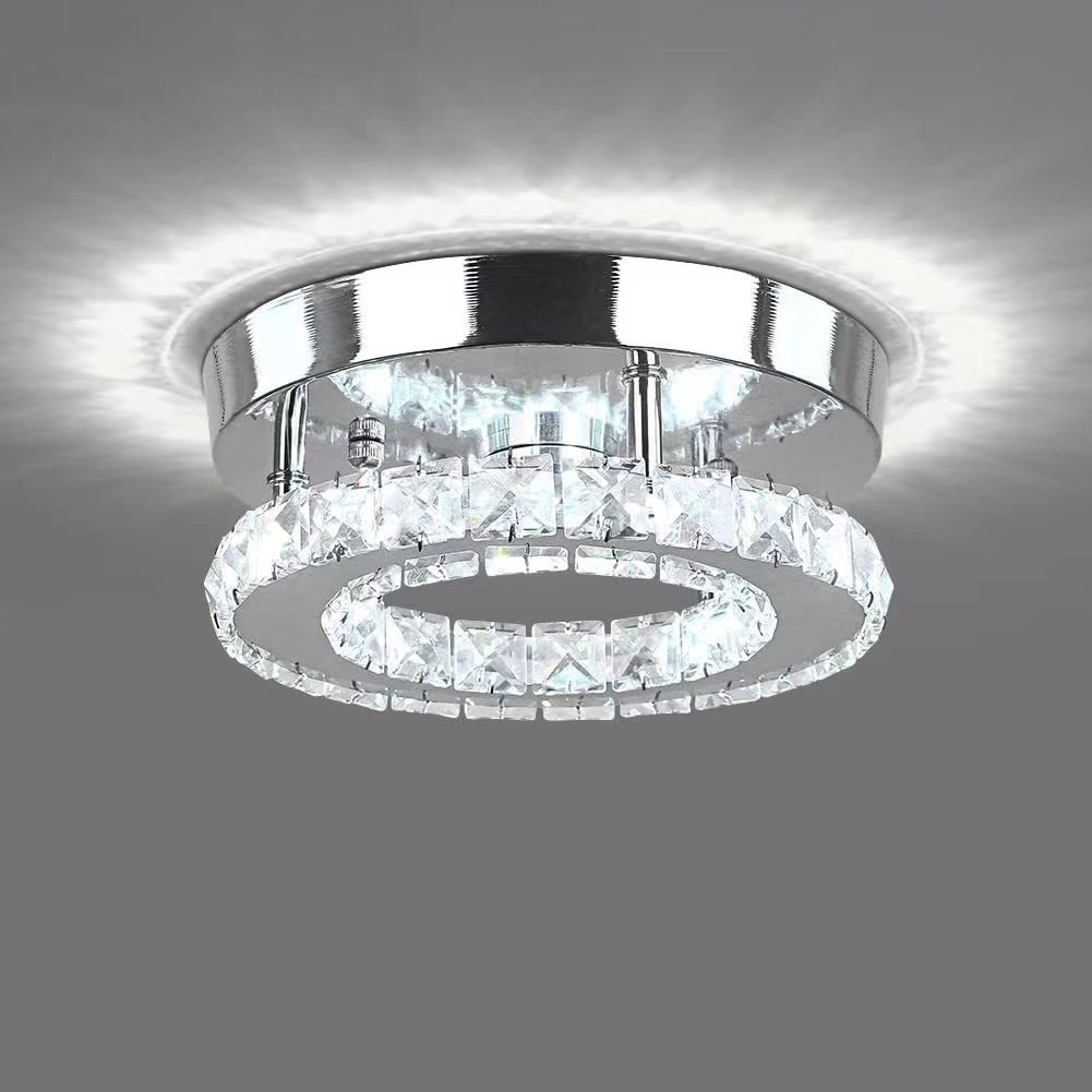 Lampu lorong kristal LED, lampu koridor lorong tipe tombol lampu langit-langit bulat ruang tamu hangat putih lampu balkon