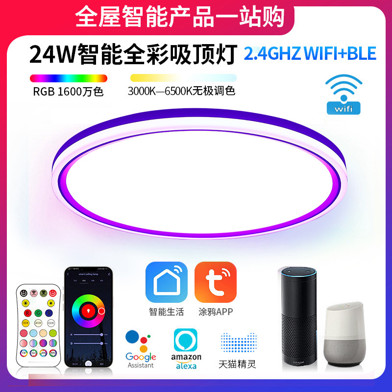 Lampu langit-langit cerdas bulat mingguan, lampu kamar tidur ruang tamu Tuya WARNA peredupan RGBCW WIFI Bluetooth bercahaya