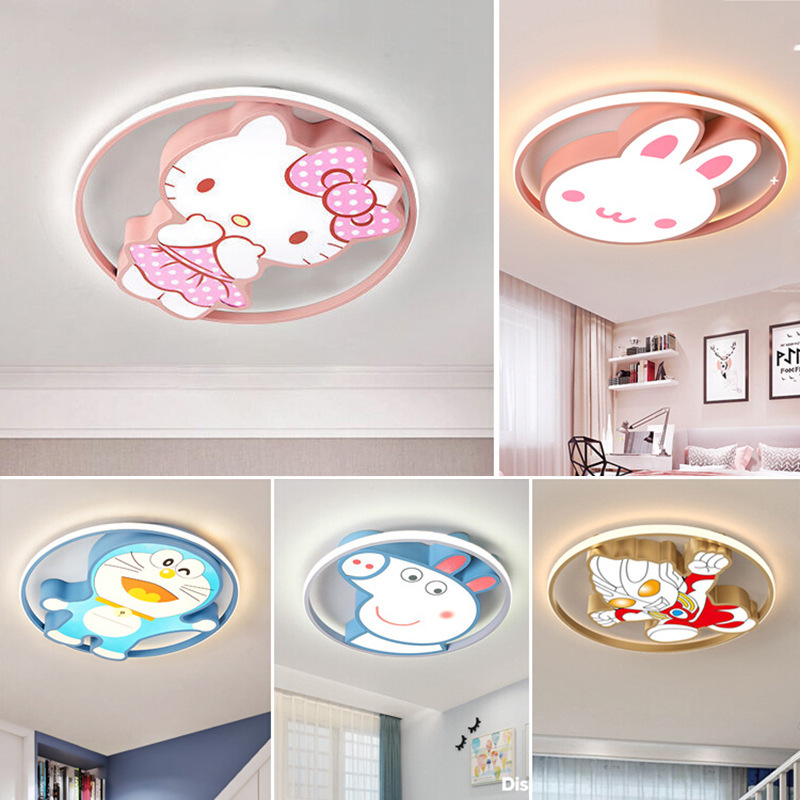 Lampu langit-langit kamar anak-anak pelindung mata modis kartun bulat anak laki-laki dan perempuan lampu kamar tidur utama kreatif sederhana modern