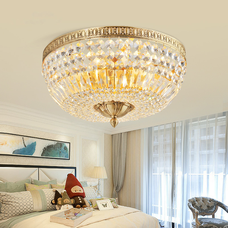 Lampu langit-langit kamar tidur kristal retro Perancis lampu Amerika bulat lampu ruang tamu mewah lorong balkon lampu ruang ganti lorong