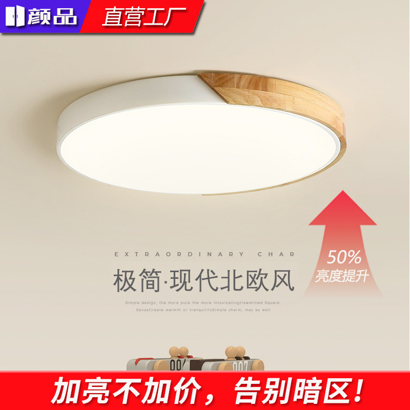 Lampu kamar tidur log Nordic lampu langit-langit led bulat modern sederhana lampu belajar ruang macaron ultratipis