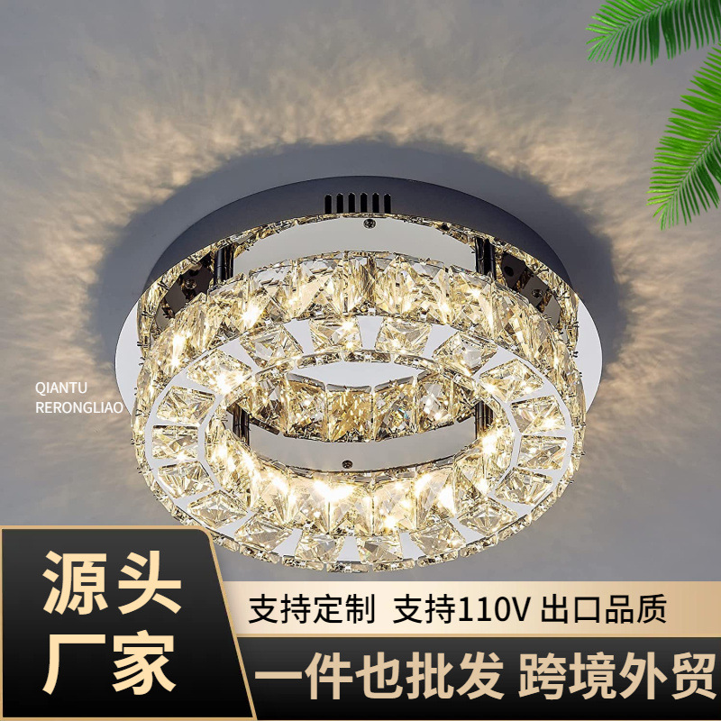 Lampu langit-langit kristal bulat lintas batas lampu lorong koridor lorong LED sederhana ruang modern lampu mewah pabrikan