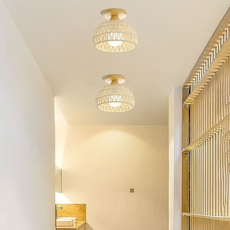 Lampu langit-langit gaya Jepang, lampu lorong koridor rotan gaya Nordik, lampu balkon lorong log retro