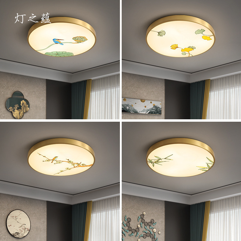 Lampu esensi bulat untuk ruang kamar tidur, lampu kamar tidur gaya Tiongkok baru bahan tembaga, lampu mewah sederhana modern untuk ruang kamar tidur