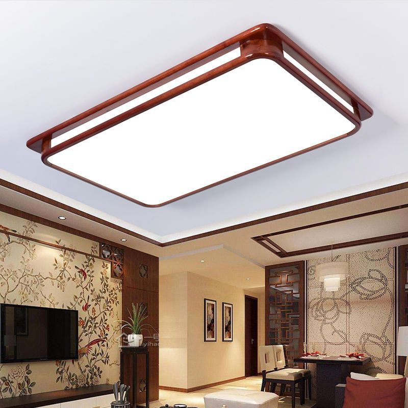 Lampu langit-langit led gaya Cina lampu ruang tamu kayu solid persegi panjang lampu kamar tidur lorong gaya Cina antik lampu ruang makan belajar