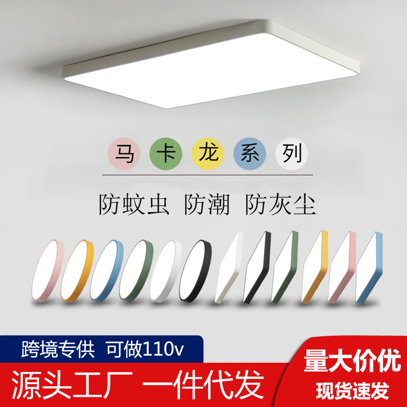 Lampu langit-langit led macaron ultra-tipis, lampu ruang tamu suara cerdas Xiaomi kamar tidur master sederhana modern persegi panjang