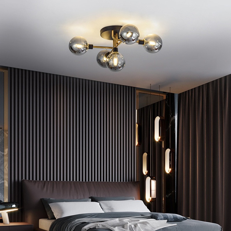 Lampu kamar tidur lampu Nordic mewah sederhana modern rumah ruang tamu lampu kaca kreatif ruang kepribadian ajaib kacang lampu langit-langit
