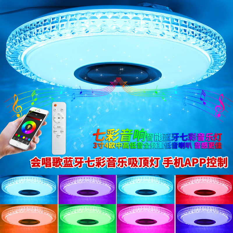 Lampu led langit-langit kamar tidur Bluetooth Cerdas, lampu led bulat ruang tamu, lampu hangat romantis, lampu musik kamar anak-anak warna-warni