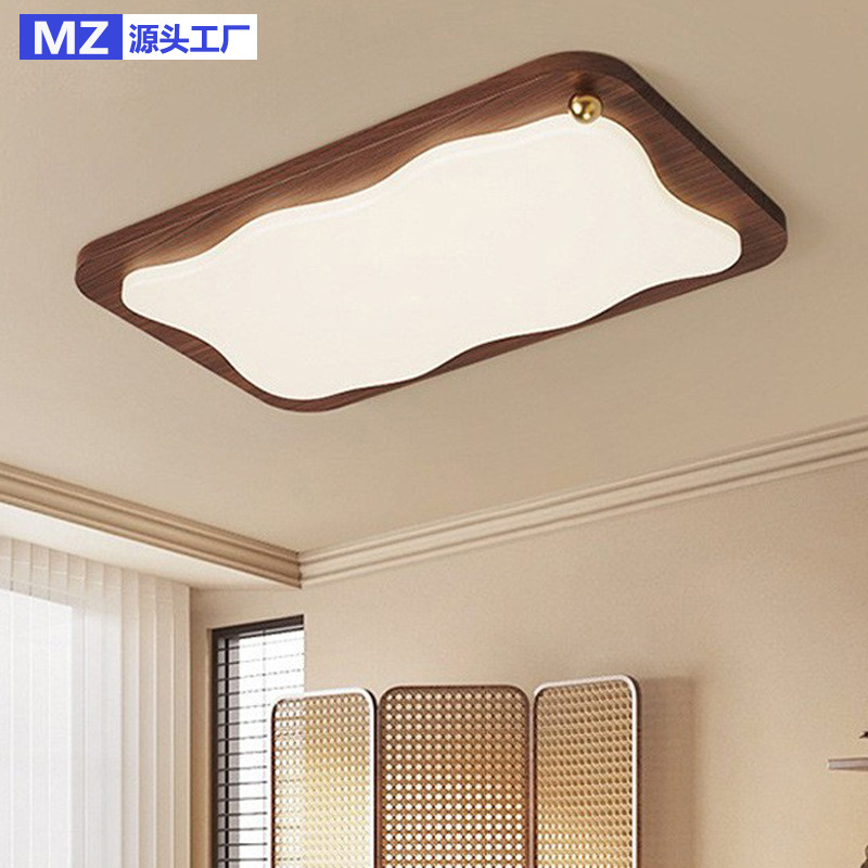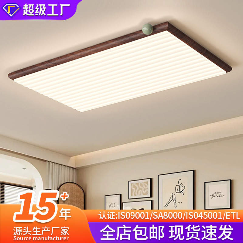 Lampu langit-langit ruang tamu gaya Pertengahan lampu utama aula pelindung mata spektrum penuh kacang susu walnut minimalis retro gaya Amerika