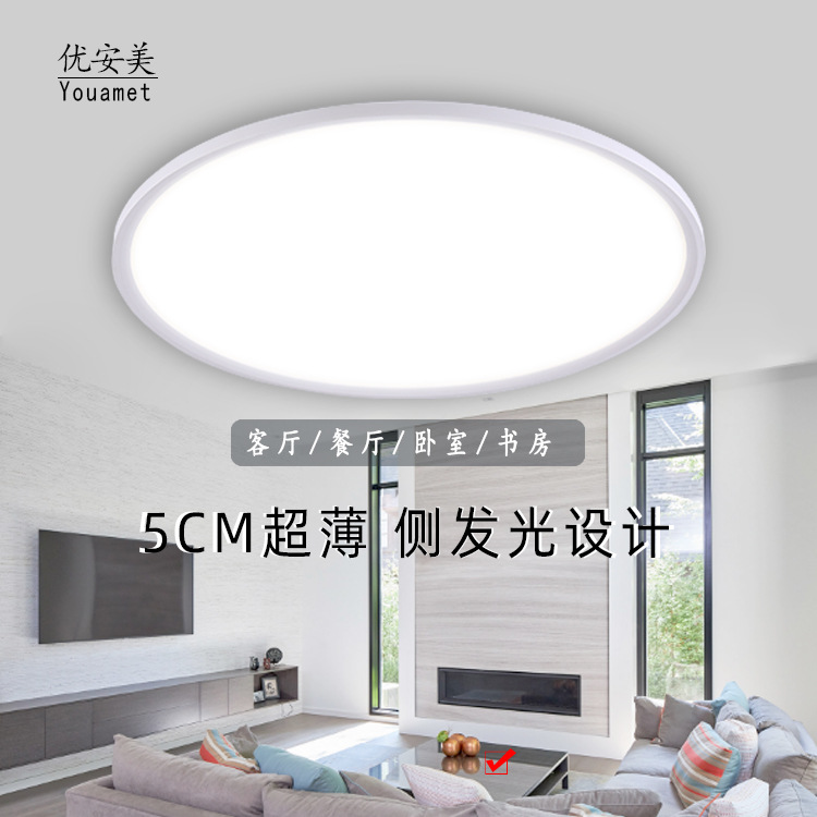 Lampu plafon ruang tamu, ultra-tipis lampu rumah tangga bingkai aluminium lampu kamar tidur sederhana lampu Nordik LED super terang lampu ruang tamu