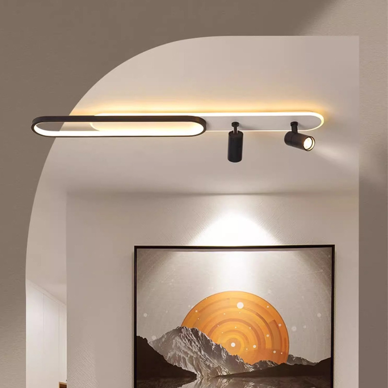 Pencahayaan kamar tidur bergaya Nordik, ruang makan, ruang tamu, lampu langit-langit hitam rumah modern, lampu LED hemat energi.