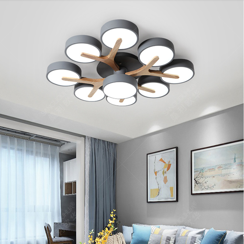 Lampu ruang tamu Nordic, lampu langit-langit LED modern sederhana kepribadian kreatif macaron kayu solid restoran kamar tidur 3665