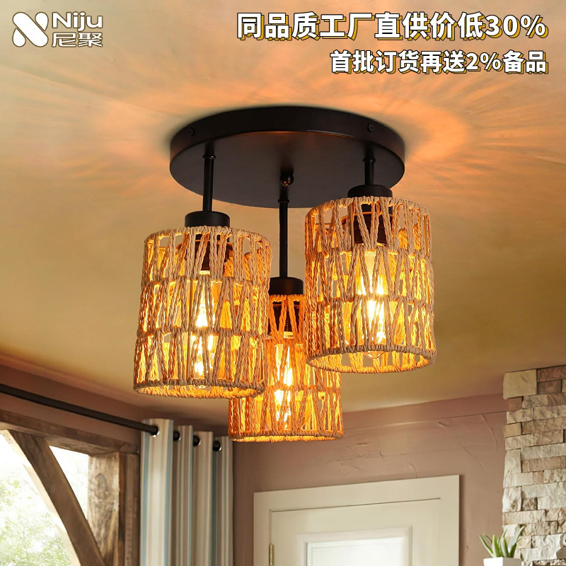 Lampu Gantung Rotan Buatan Tangan Gaya Eropa Lampu Langit-Langit