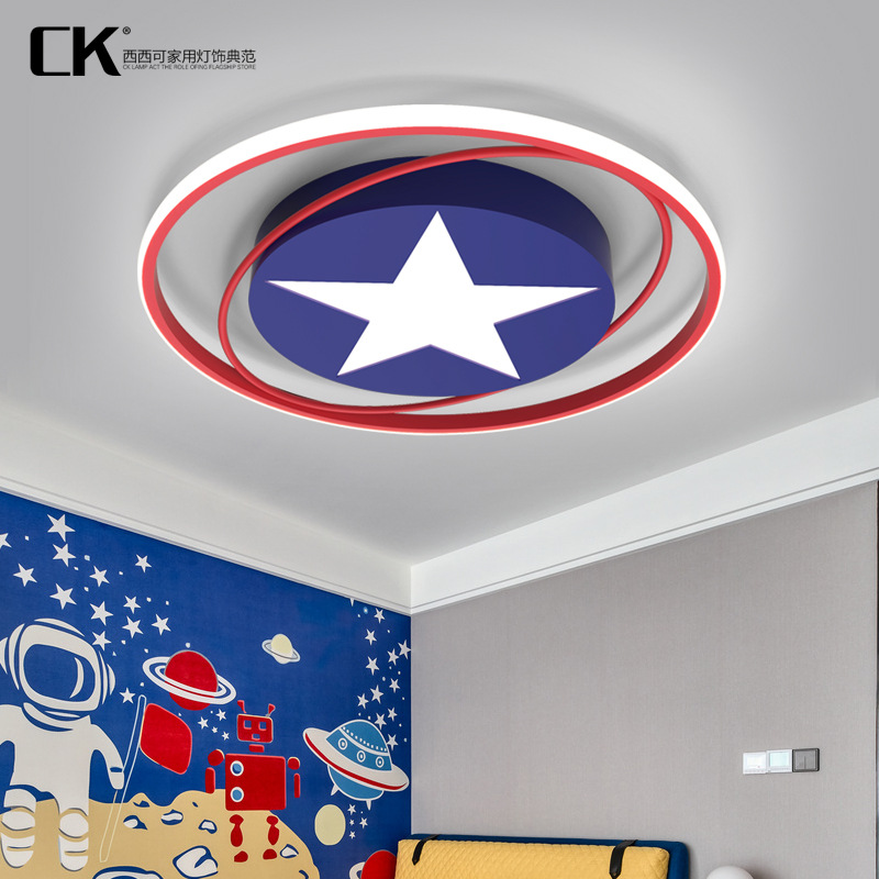 Lampu kamar anak-anak, lampu pencahayaan kamar tidur simpel modern led lampu langit-langit suasana kreatif kartun kapten Amerika