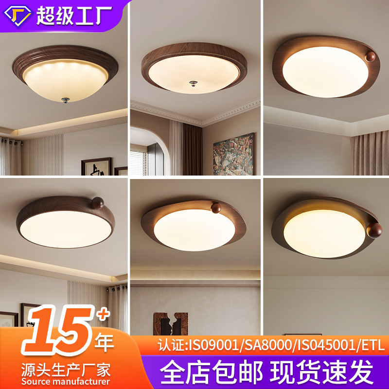 Lampu langit-langit kamar tidur bergaya vintage yang dipilih dengan cermat, lampu kamar tidur berbahan kayu walnut retro, lampu koridor dan ruang belajar spektrum penuh yang melindungi mata.
