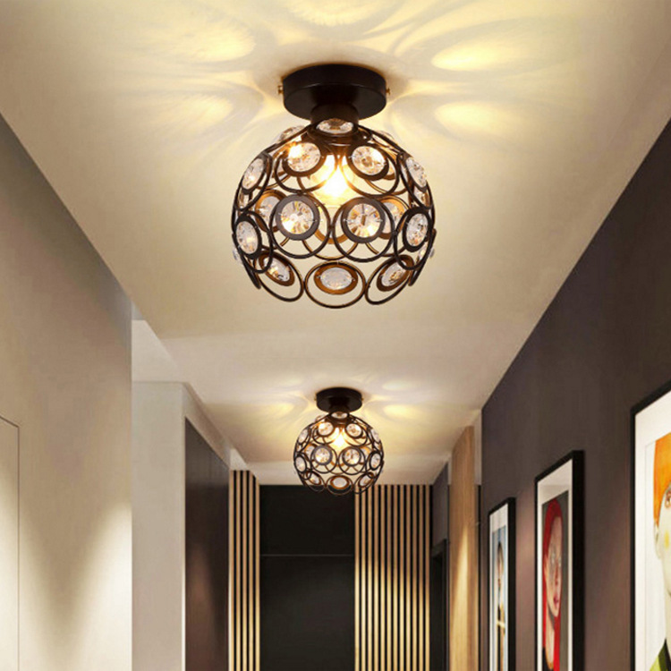 Lampu langit-langit kristal sederhana lintas batas, lampu LED rumah tangga bulat ruang hangat lorong kamar tidur