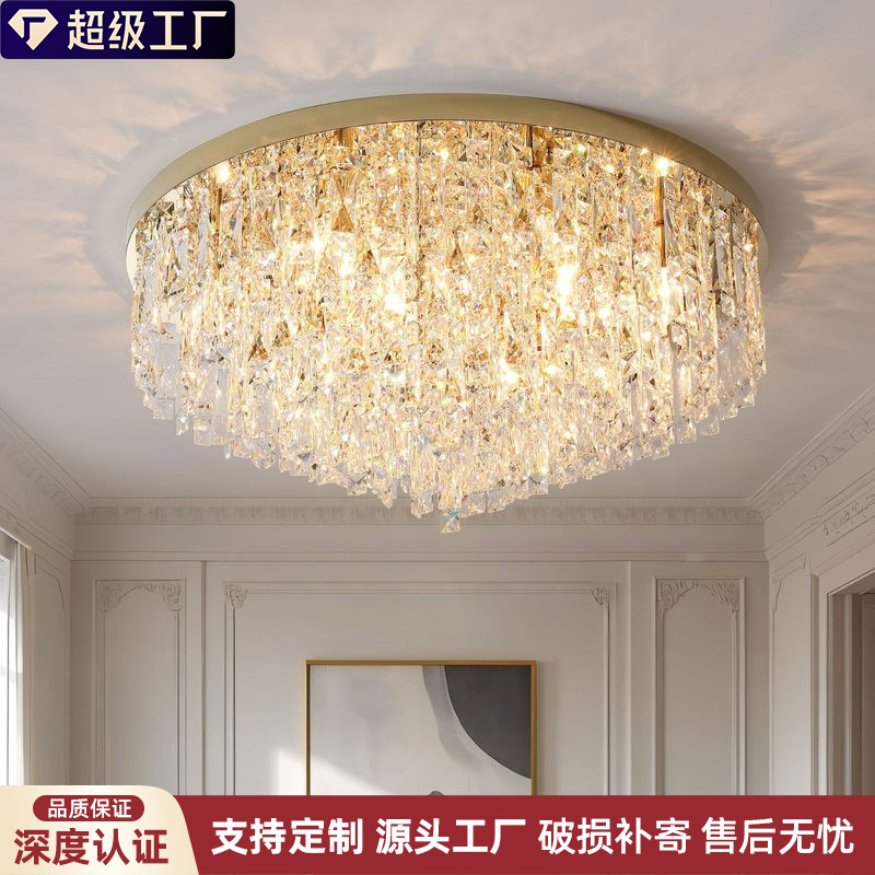 Lampu langit-langit bulat kristal, lampu ruang tamu minimalis modern suasana sederhana Eropa