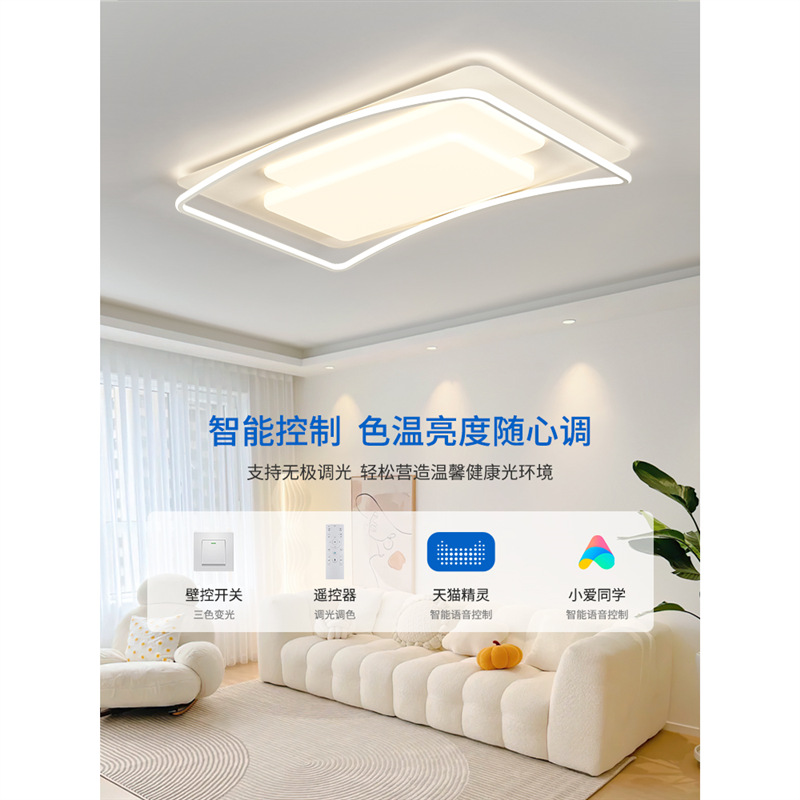 Lampu atap persegi panjang, lampu utama ruang tamu, lampu langit-langit super terang, gaya krim, suasana sederhana modern baru