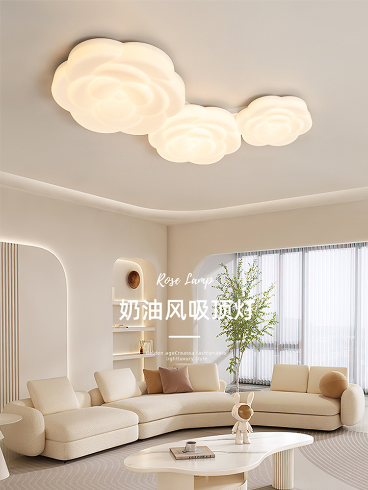 Lampu langit-langit gaya krim Nordik bunga sederhana lampu ruang tamu spektrum penuh led kombinasi lampu aula pelindung mata lampu kamar tidur
