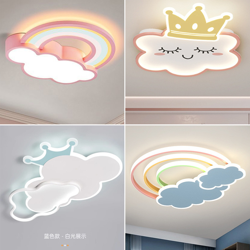 Lampu langit-langit kamar anak-anak Nordic 95 tampilan tinggi spektrum penuh lampu pelindung mata awan pelangi lampu kamar tidur suara cerdas