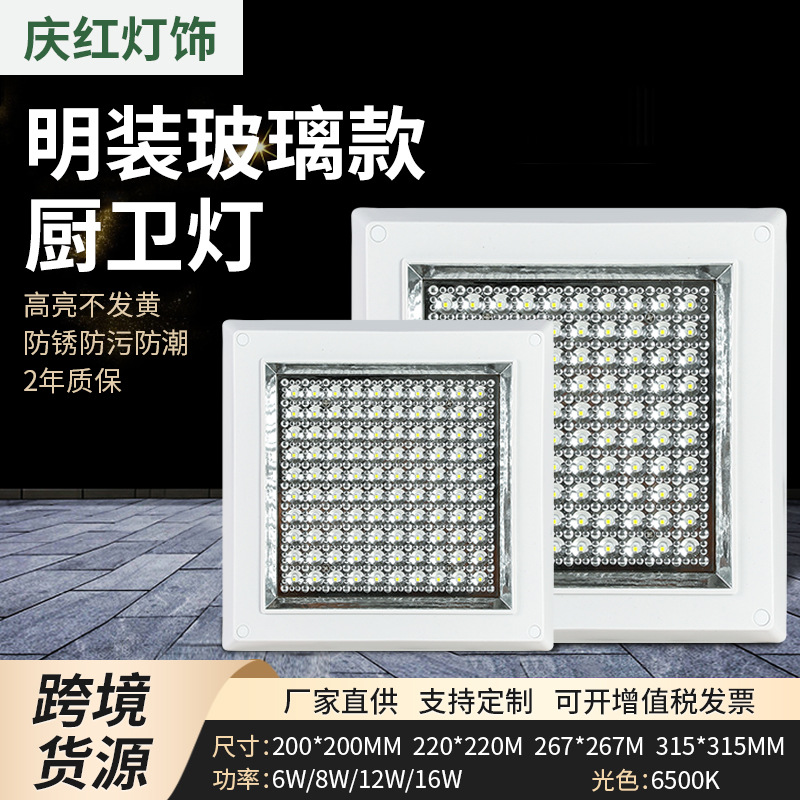 Lampu Dapur Langit-Langit 30x30 Langit-Langit Gantung 20x20 Kamar Mandi Tipe Kancing Kamar Mandi Tertanam LED Persegi