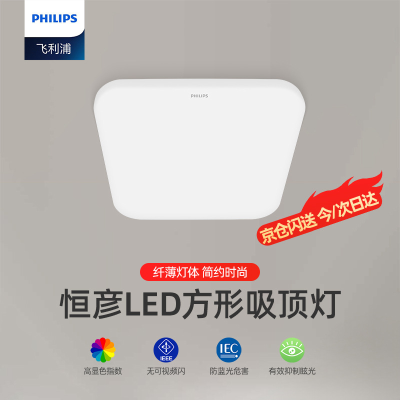 Philips Lampu Langit-langit LED Ruang Belajar Lampu Kamar Tidur Dapur Kamar Mandi Balkon Lampu Atas Minimalis Persegi Hengyan