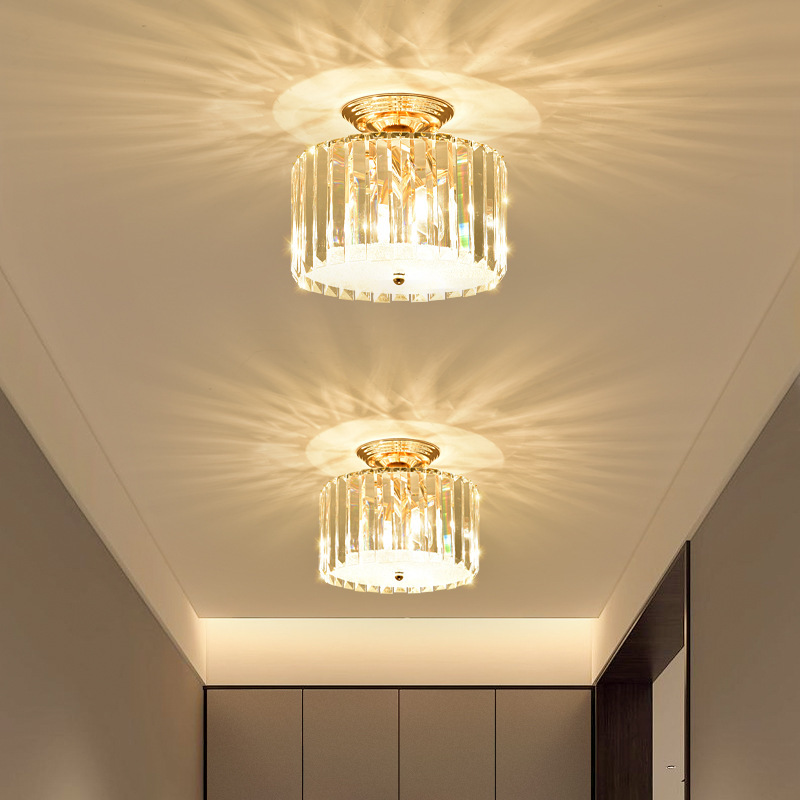 Cross-Border lampu langit-langit kristal sederhana Amerika, lampu lorong bulat lampu koridor mewah untuk tangga lorong kamar tidur belajar retro
