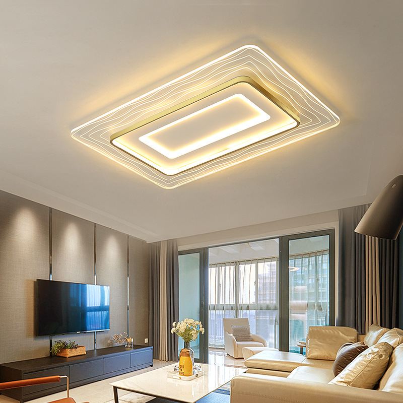 Lampu plafon persegi panjang pola gelombang, lampu ruang tamu lampu kamar tidur lampu dapur lampu lorong mendukung kontrol suara