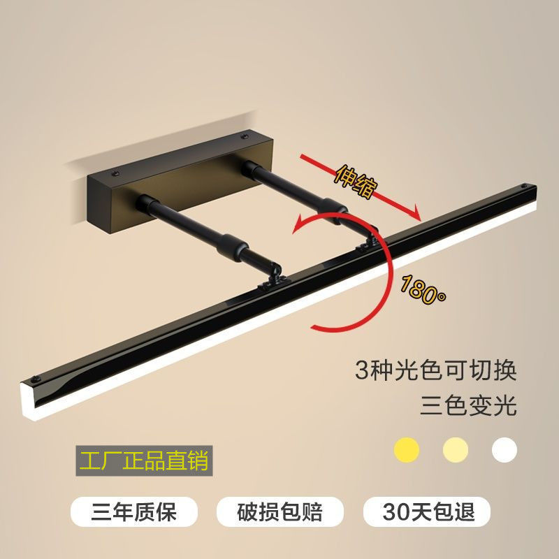 Lampu Depan Cermin Kamar Mandi Led Tanpa Lubang Kamar Mandi Teleskopik Lampu Cermin Tiga Warna Kamar Mandi Lampu Dinding Pasokan Pabrik