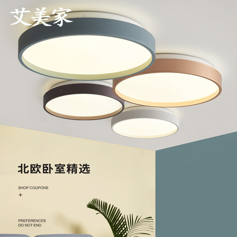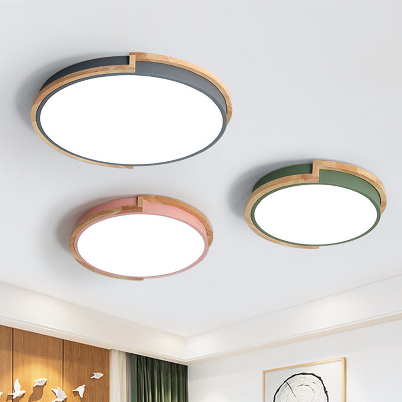 Pencahayaan Guangdong Zhongshan lampu langit-langit led Nordik lampu kamar tidur belajar remote control macaron kayu solid bulat sederhana