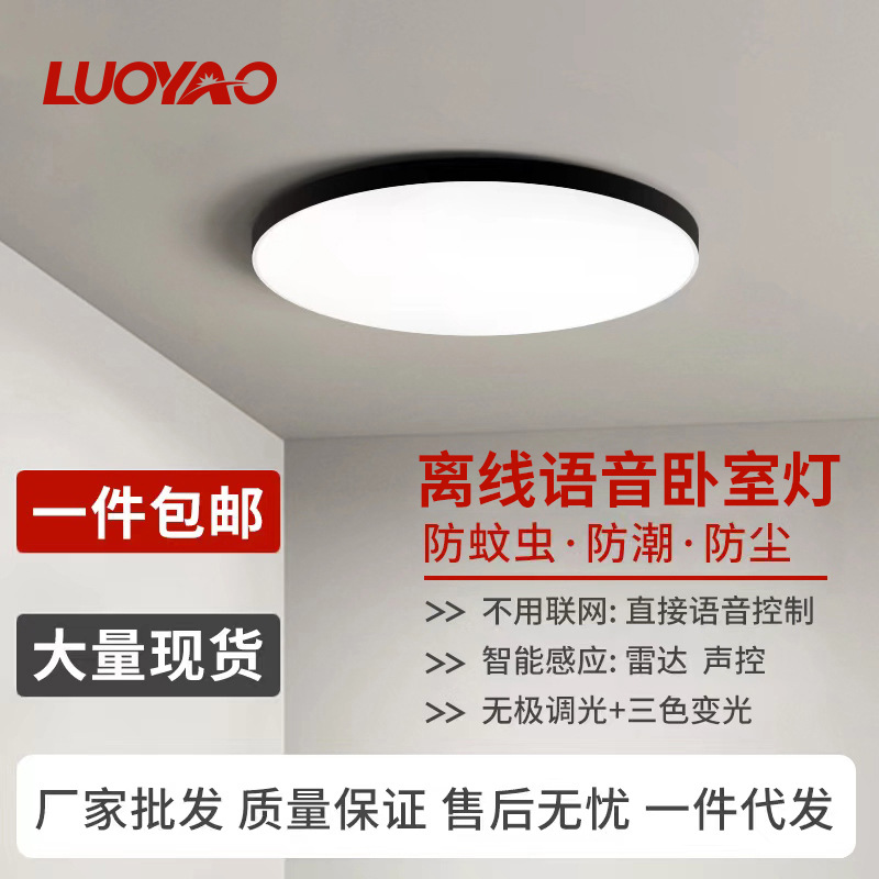 Lampu led Modern tiga warna kamar tidur, lampu langit-langit Taiwan ruang tamu belajar cerdas remote control lampu langit-langit suara offline