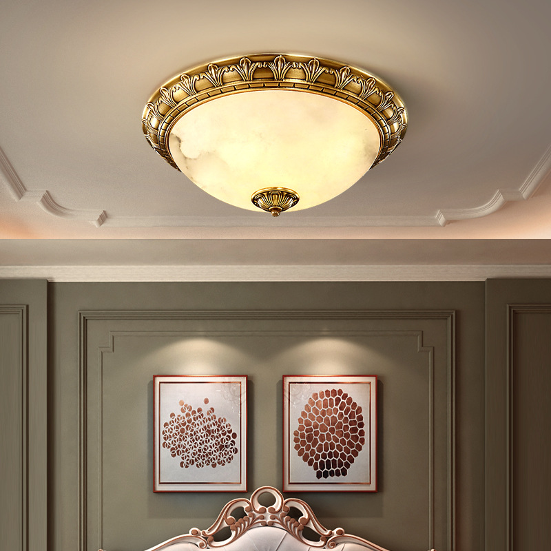 Lampu langit-langit marmer Spanyol lampu kamar tidur master ruang ganti lorong kamar tidur belajar gaya Eropa tembaga lampu kamar tidur