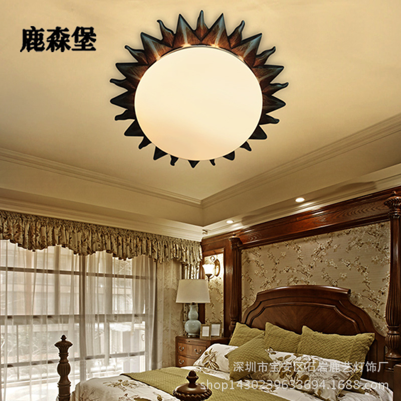 Lampu langit-langit gaya Eropa lorong balkon lampu kamar anak-anak lampu langit-langit matahari Romawi retro Amerika hangat kamar tidur