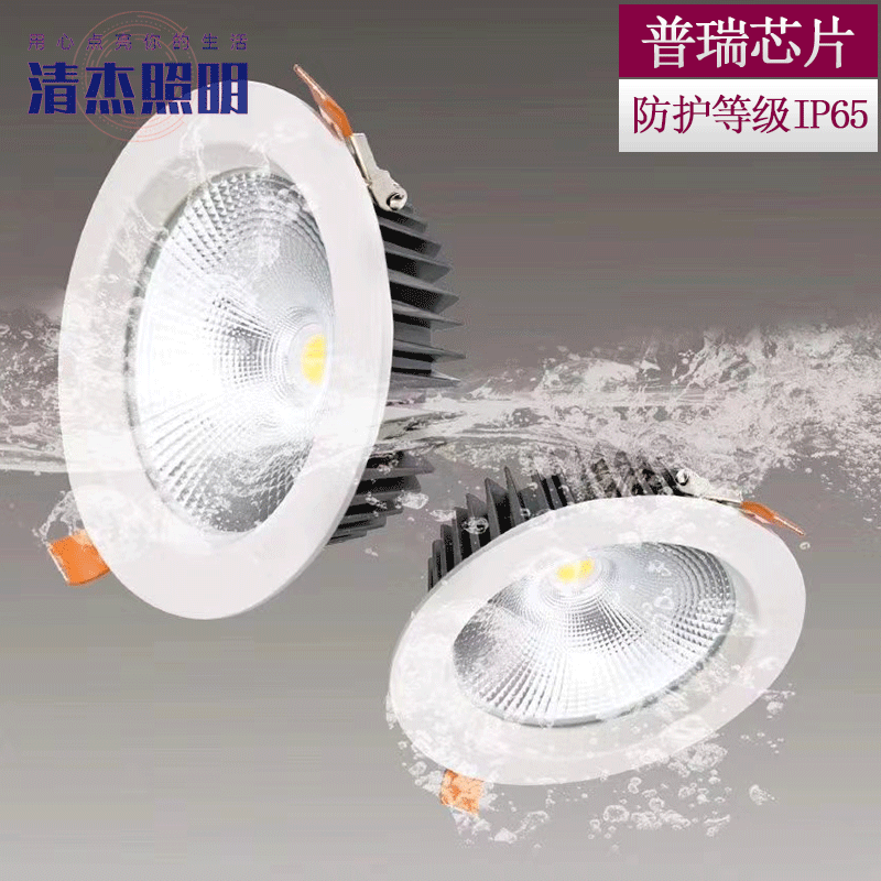 Layar tinggi jari tahan air lampu sorot led COB tertanam anti-kabut tahan debu downlight kamar mandi dapur kamar mandi tiga lubang cahaya