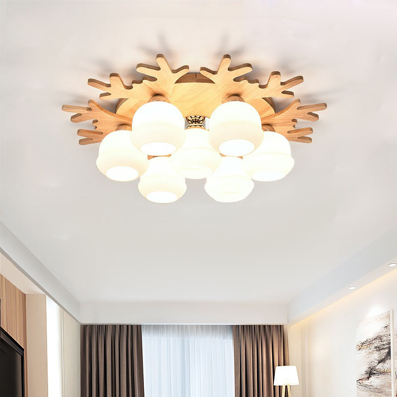 Lampu langit-langit tanduk kreatif led, lampu ruang makan kamar tidur simpel modern dipersonalisasi, lampu ruang tamu kayu polos Nordik