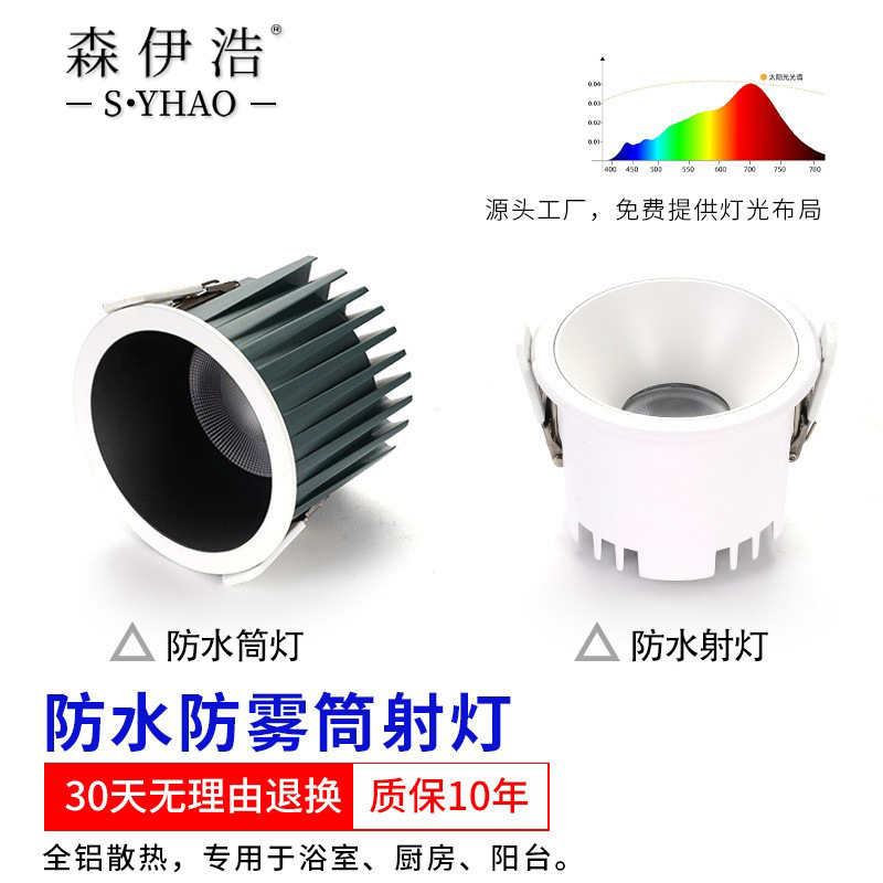 Purui Spektrum Penuh Tertanam COB Tahan Air Lampu Tembak Dapur Kamar Mandi Balkon IP65 Tahan Air Lampu Downlight Doodle Mijia